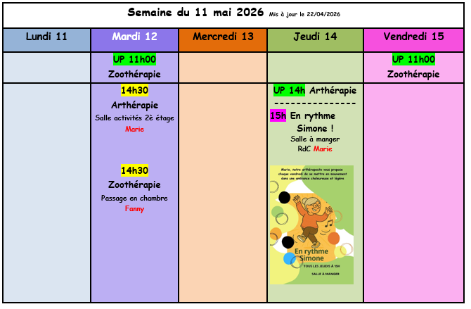 Planning de la semaine du 13 avril