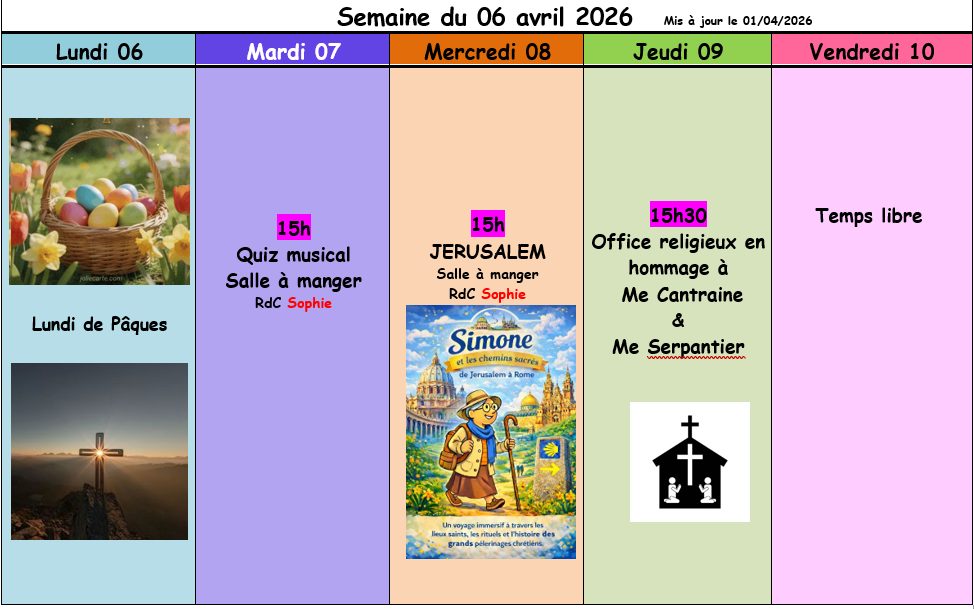 Planning semaine du 30 mars