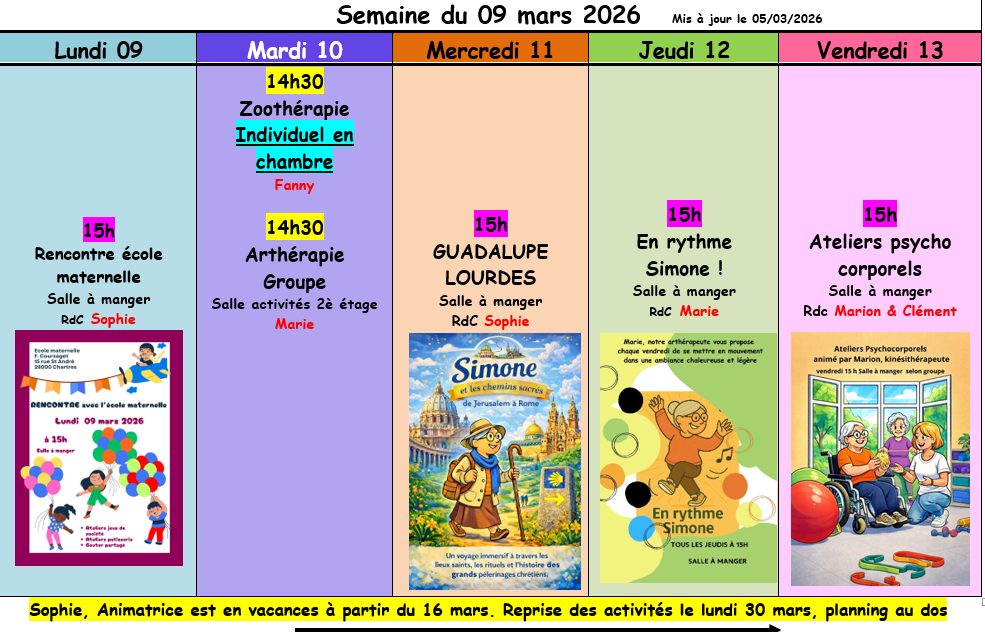 Planning semaine du 02 mars 2026